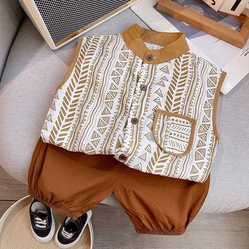 12M-5Y Toddler Boys Sleeveless Printed Vest Pants Two-Piece Set Boys Clothing