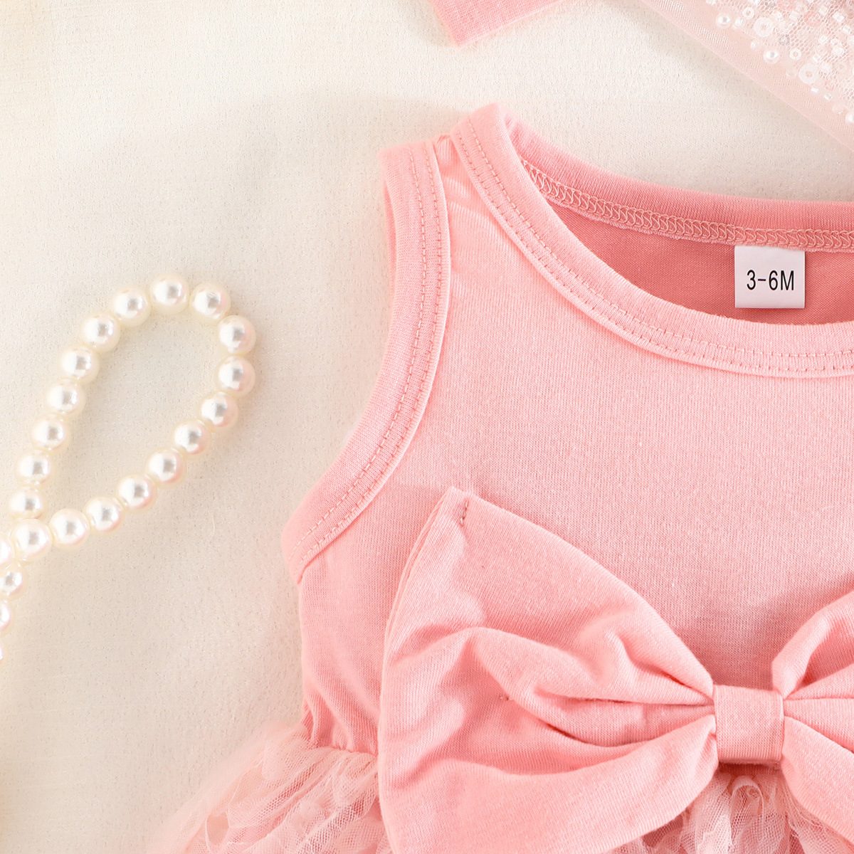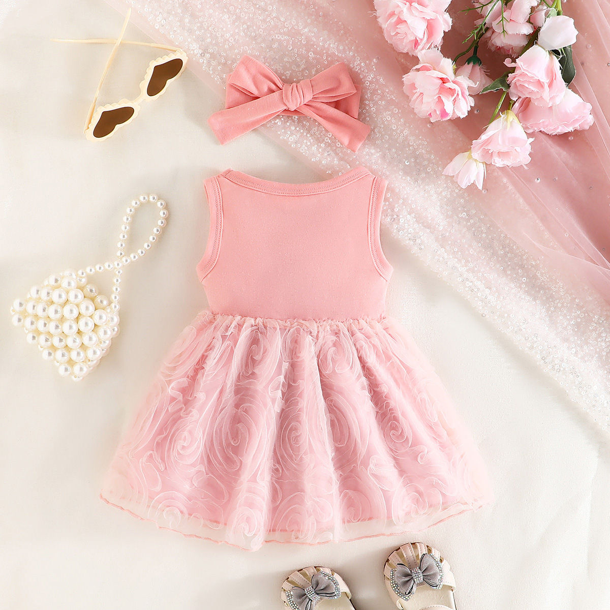 3-24M Baby Girls Bow Mesh Tank Dresses & Headband Boys Clothing