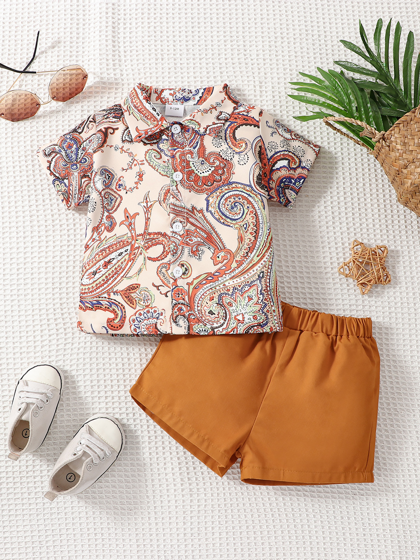 6M-3Y Baby Boys Ethnic Print Short Sleeve Lapel Shirt Shorts Set  Baby Clothes