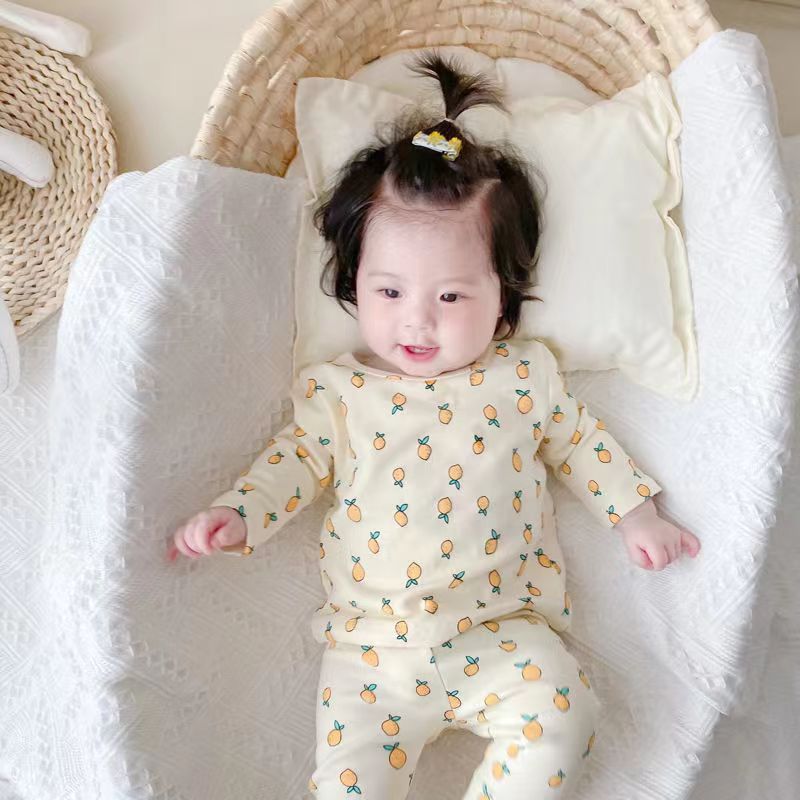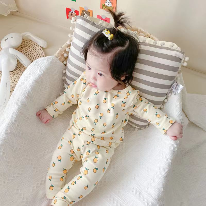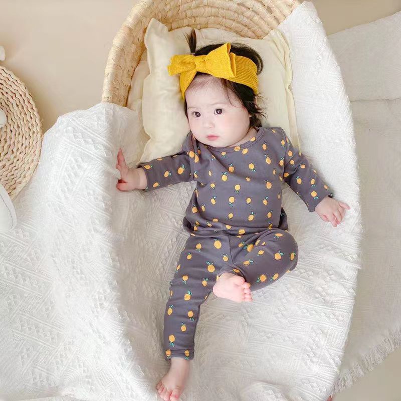 0-18M Baby Girl & Boy Sets Long Sleeve Lemon Print Top And Pants Baby Clothing