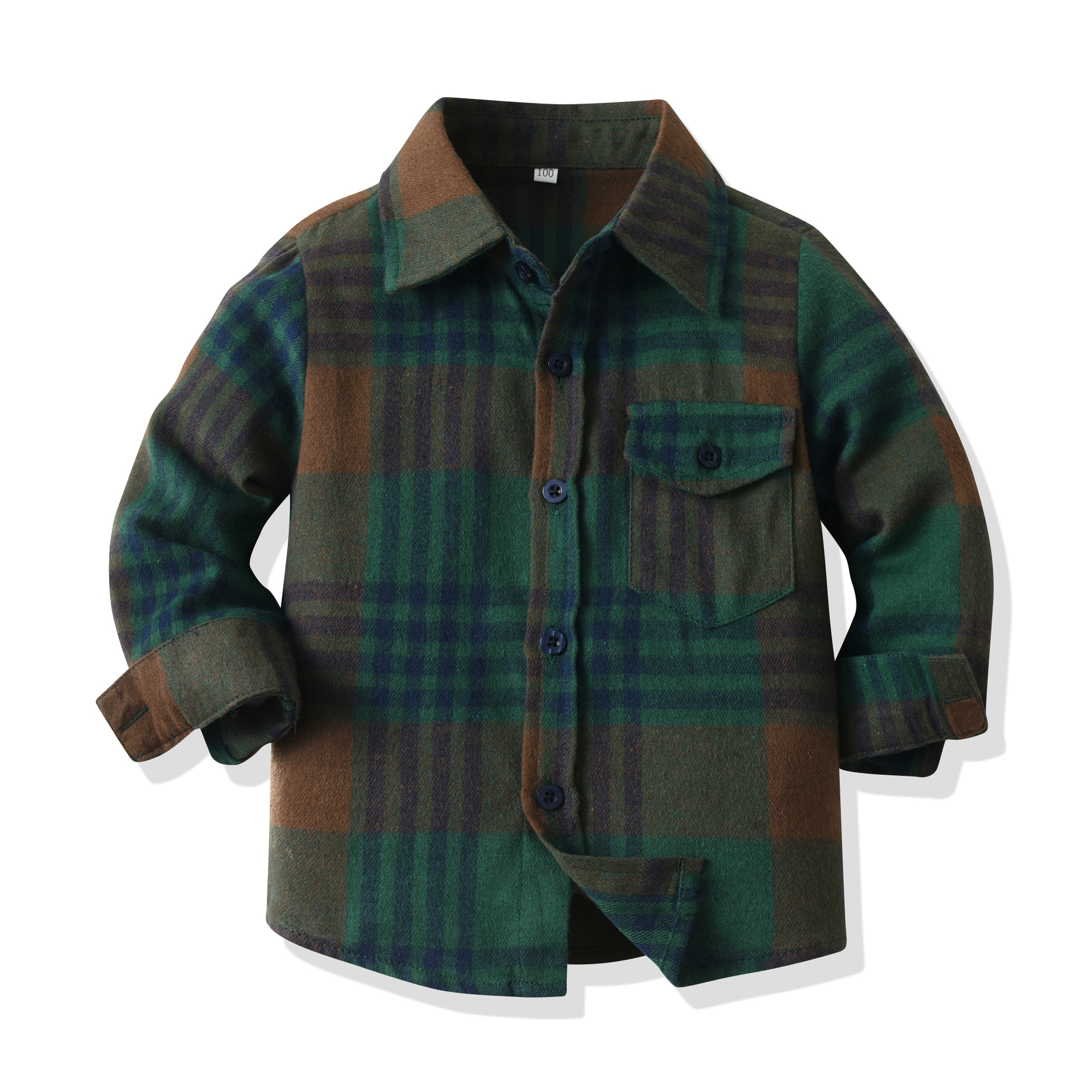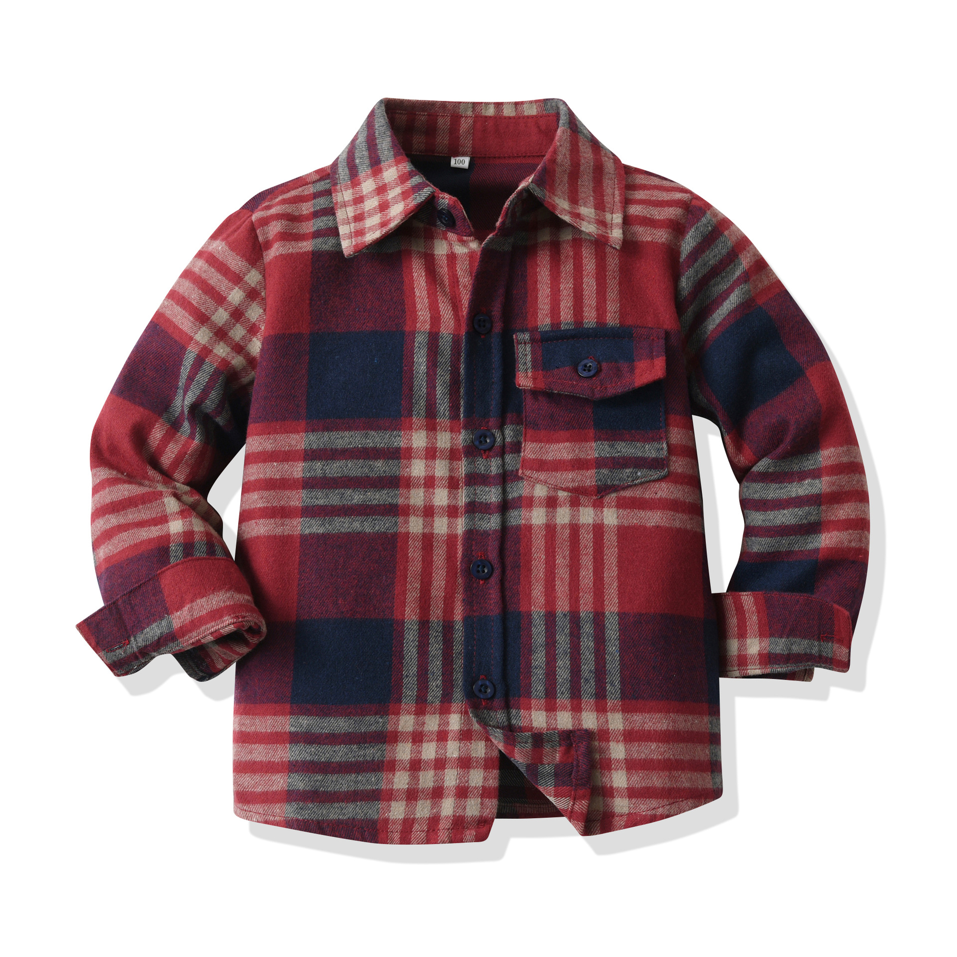 12M-6Y Toddler Boys Lapel Plaid Long Sleeve Casual Shirts Boys Clothing
